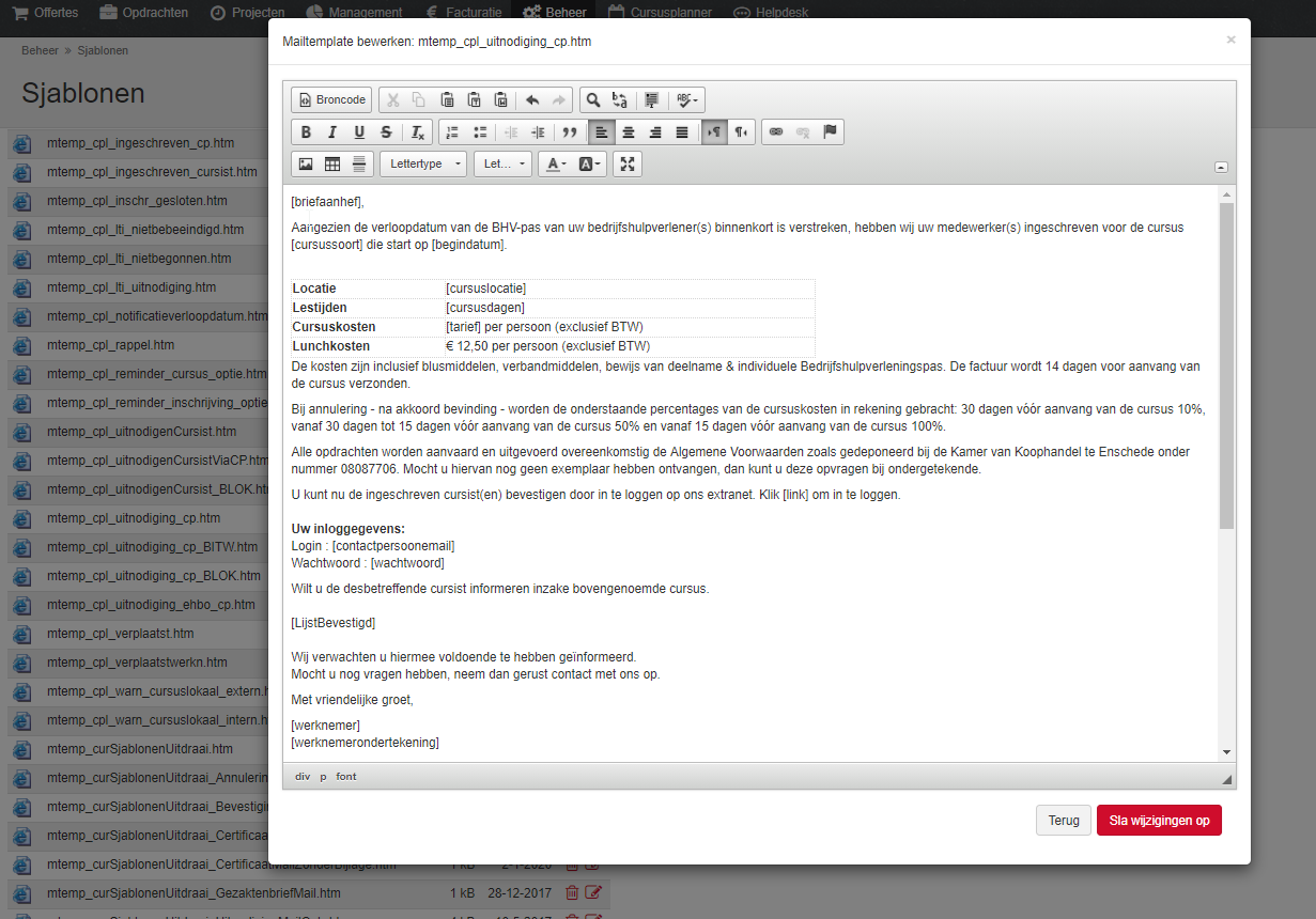 Mailsjablonen bewerken vanuit beheer-sjablonen